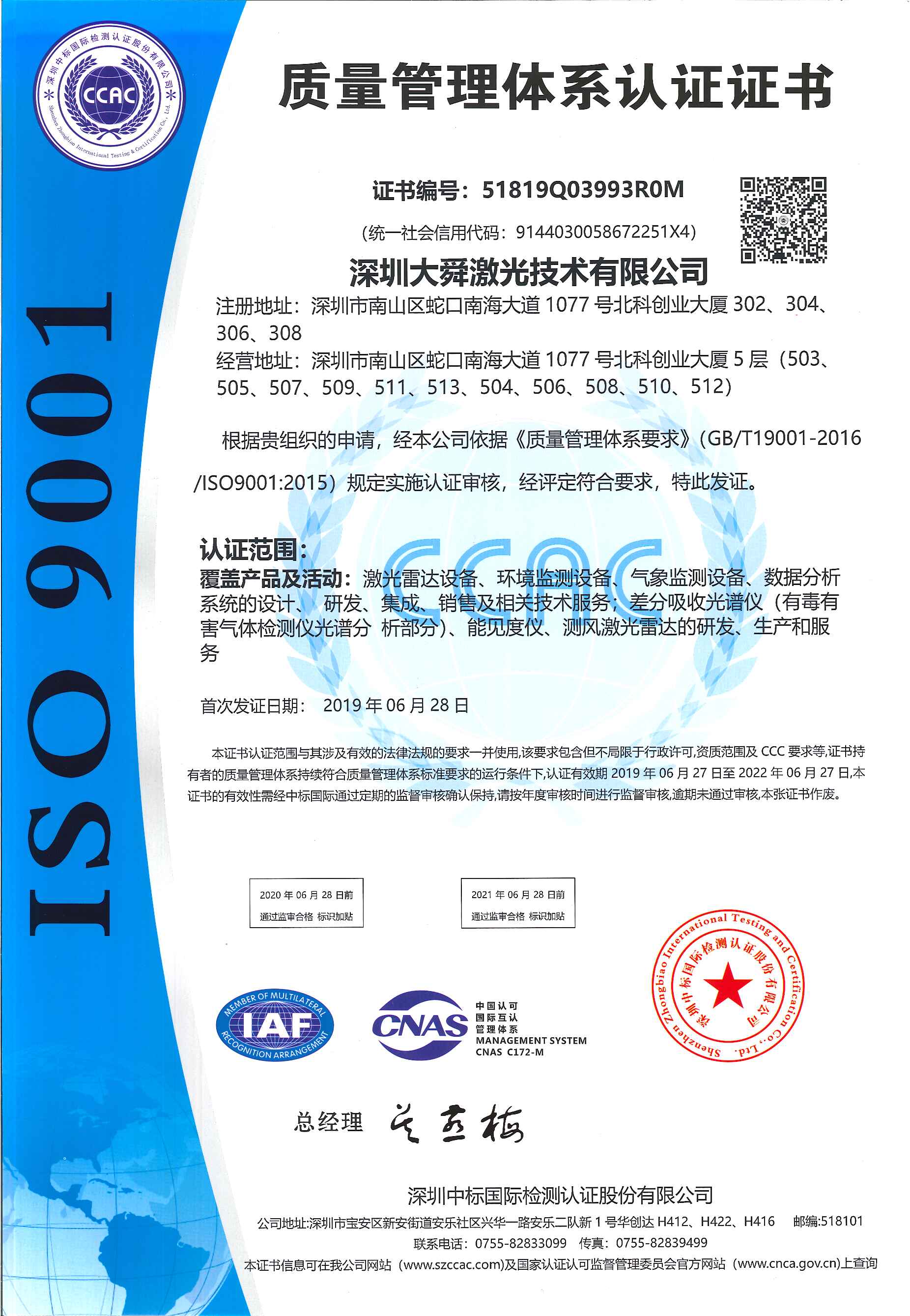 ISO 9001質量管理(lǐ)體(tǐ)系認證證書(shū)